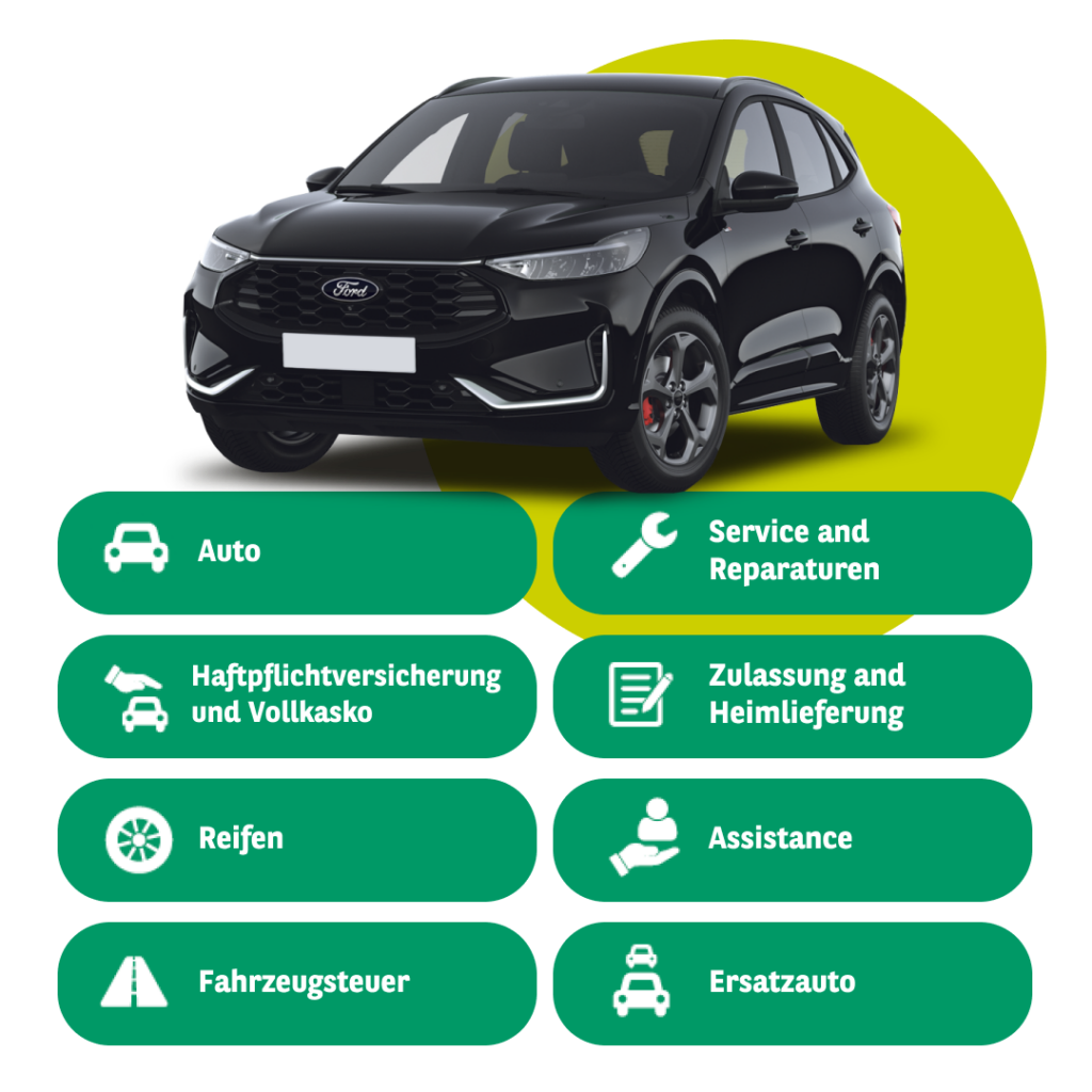 Sie bezahlen ganz einfach während der gewählten Laufzeit den monatlichen Fixpreis Ihres Wunschfahrzeugs, und wir kümmern uns um den Rest – selbstverständlich ohne versteckte Kosten.
